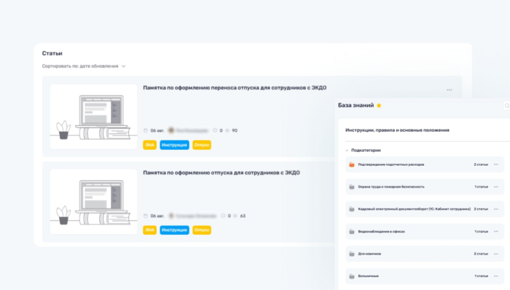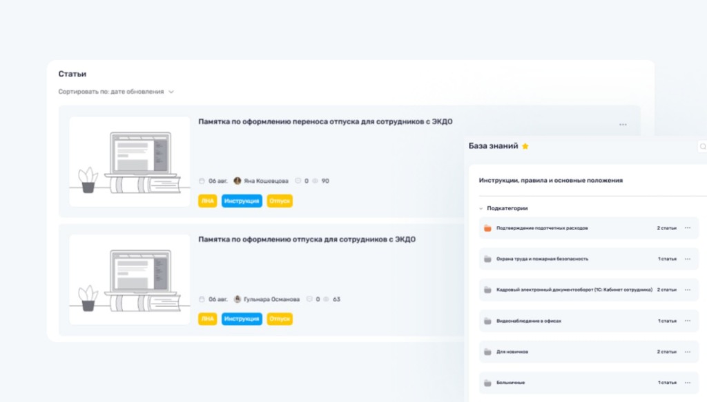Структурировали все инструкции: для новичков, для руководителей, для всех отделов. Вместо получасовых объяснений «как оформить отпуск» направляется ссылка на требуемый ресурс. Вопросов и ошибок стало в разы меньше.