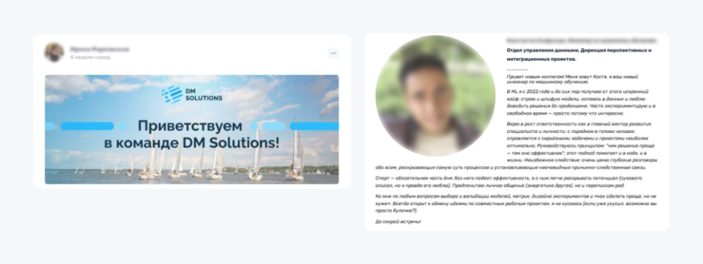 - Пульс компании — цифровая «доска почёта» новичков с фото и эссе, что помогло компании познакомиться с новыми коллегами.