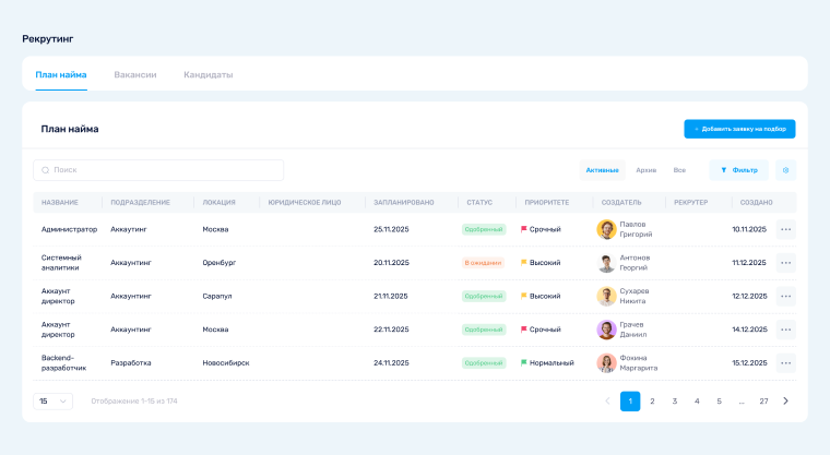 - Объединить HR-процессы в единую систему.