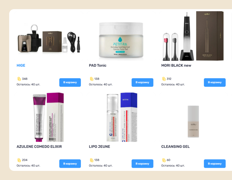 - Продукция представлена на ведущих маркетплейсах России: OZON, Wildberries, Lamoda