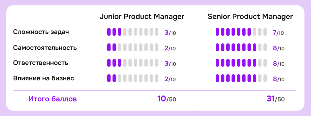 Теперь количество баллов определяет грейд. Для компании можно заранее прописать вилки: