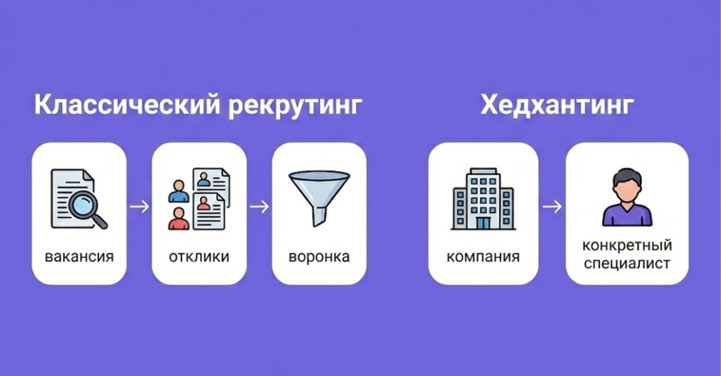 Хедхантинг — это формат найма, при котором компания целенаправленно привлекает конкретного специалиста из другой организации. Происходит от английского headhunting — буквально «охота за головами». Название пугающее, но суть процесса описывает точно.В отличие от классического рекрутинга, при хедхантинге не публикуют вакансии и не ждут откликов. Компания заранее понимает, кто именно ей нужен, и выходит к этому специалисту напрямую. Поэтому хедхантинг чаще используют для ключевых ролей, например при поиске топ-менеджеров, где цена ошибки высока, а замена на «человека с улицы» невозможна.