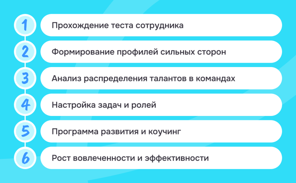 Он позволяет не только выявить таланты сотрудников, но и строить продуктивные команды на основе взаимодополняющих способностей. Это способствует росту вовлечённости, повышению производительности и снижению текучести кадров. В статье раскрывается методика проведения теста, приводится пример внедрения в корпоративной среде и даются рекомендации для HR и руководителей по использованию результатов для развития персонала и укрепления команды