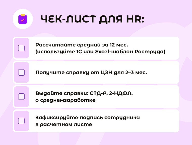 | Сохранение зарплаты на трудоустройство | Средний месячный заработок × 1–2 мес. | 1-й месяц — день увольнения; 2-й — после подтверждения от ЦЗН | До 3 мес. для «северян» или по решению службы занятости. |
