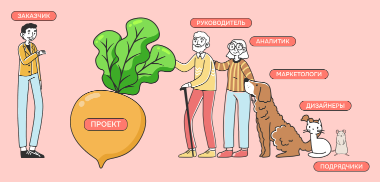 Состав и роли участников проектной команды могут меняться в зависимости от задач. Но обычно эти позиции есть всегда: