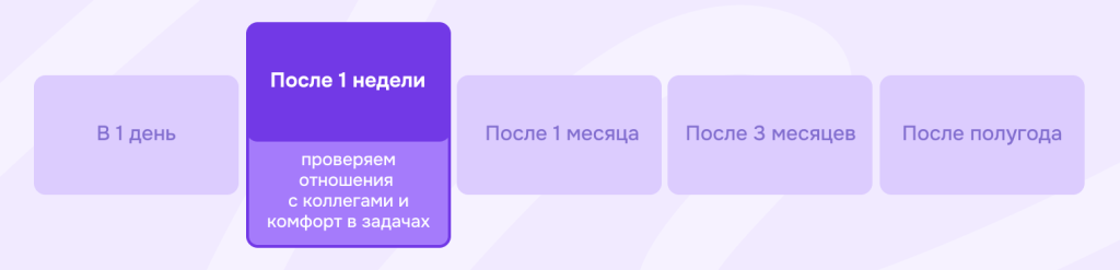 К концу недели новичок уже сталкивается с первыми задачами и начинает понимать ритм компании. Именно сейчас проверяется его способность вливаться в команду и налаживать рабочие связи. Здесь главное не относиться формально к первичной адаптации: сотрудник может остаться один на один с вопросами. Для HR важно выявить, насколько он понял процессы, нашёл контакт с коллегами и чувствует ли себя частью общей системы.