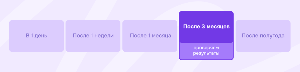 Через 30 дней появляются первые пробелы: где-то сотруднику не хватает знаний, где-то — уверенности или обратной связи. В этот момент важно отследить, не перегорел ли он от объема новой информации, и наоборот — не застрял ли в зоне рутины. Задача HR здесь — понять, на чём нужно сделать акцент: дать дополнительное обучение, назначить наставника или скорректировать ожидания.