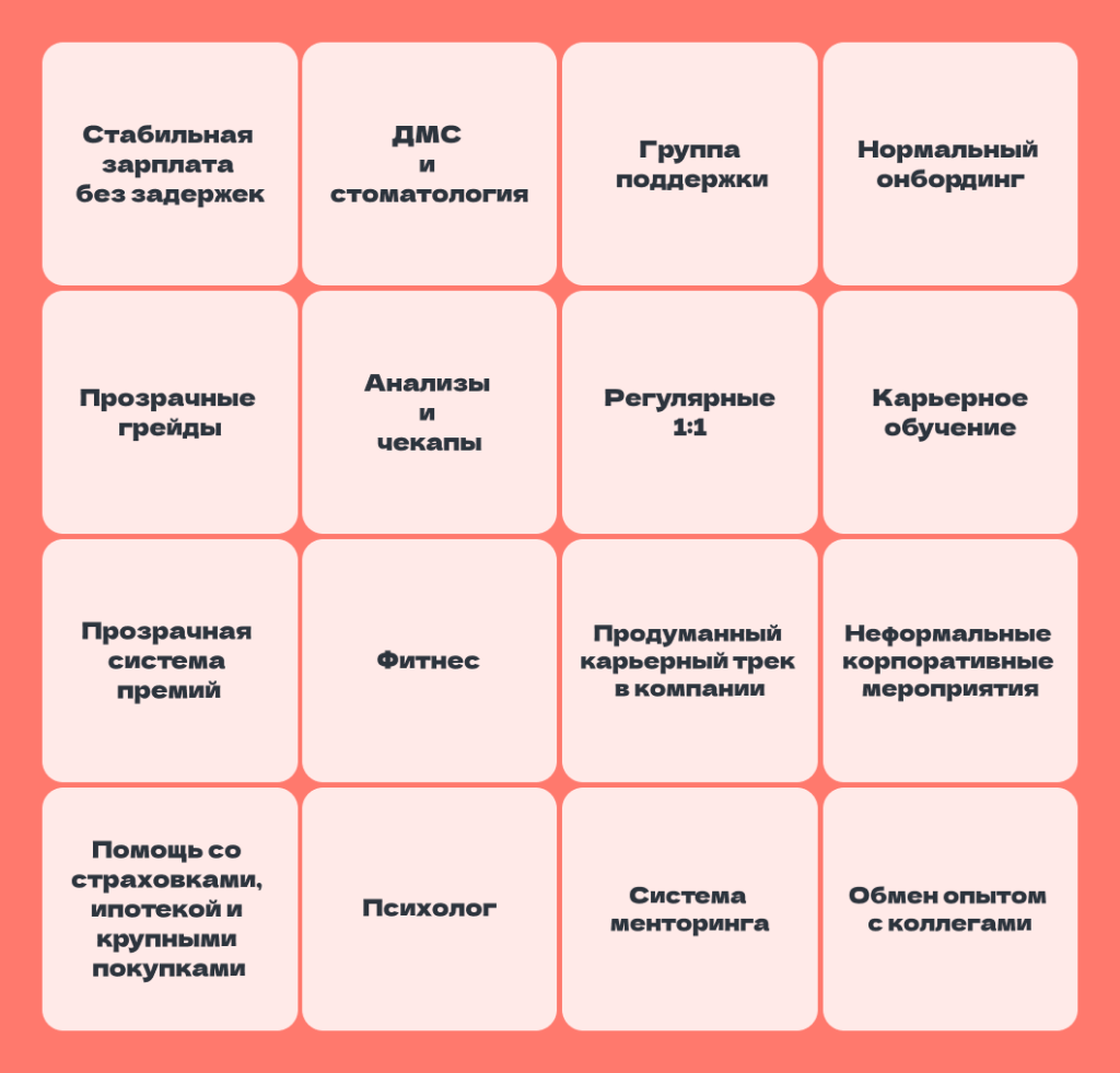 Бинго благополучной компании. Считайте, сколько пунктов у вас уже есть, а что еще нужно доработать.